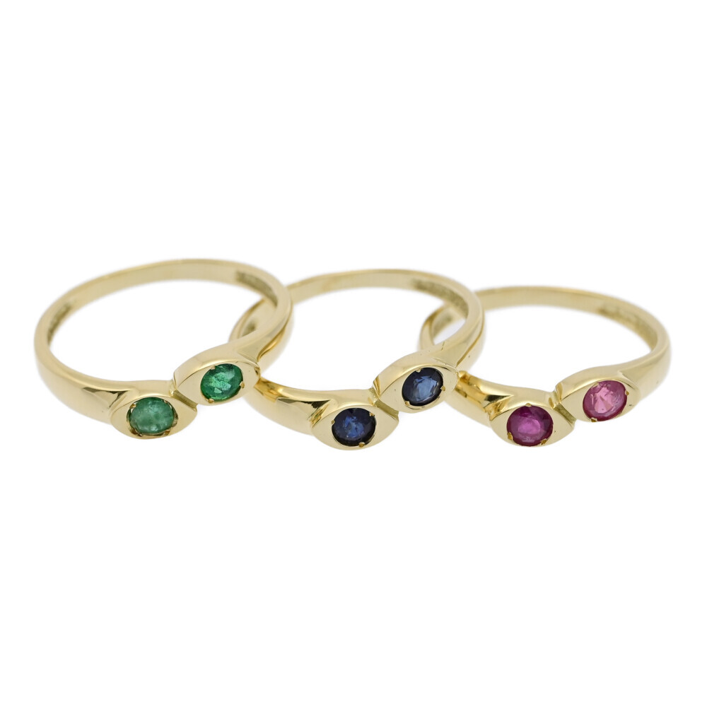 > アンティークジュエリー 3連/三連・エメラルド・サファイア・ルビーリング・アイモチーフ 指輪/YG/750-6.3g/11号/13号/記念日■583561