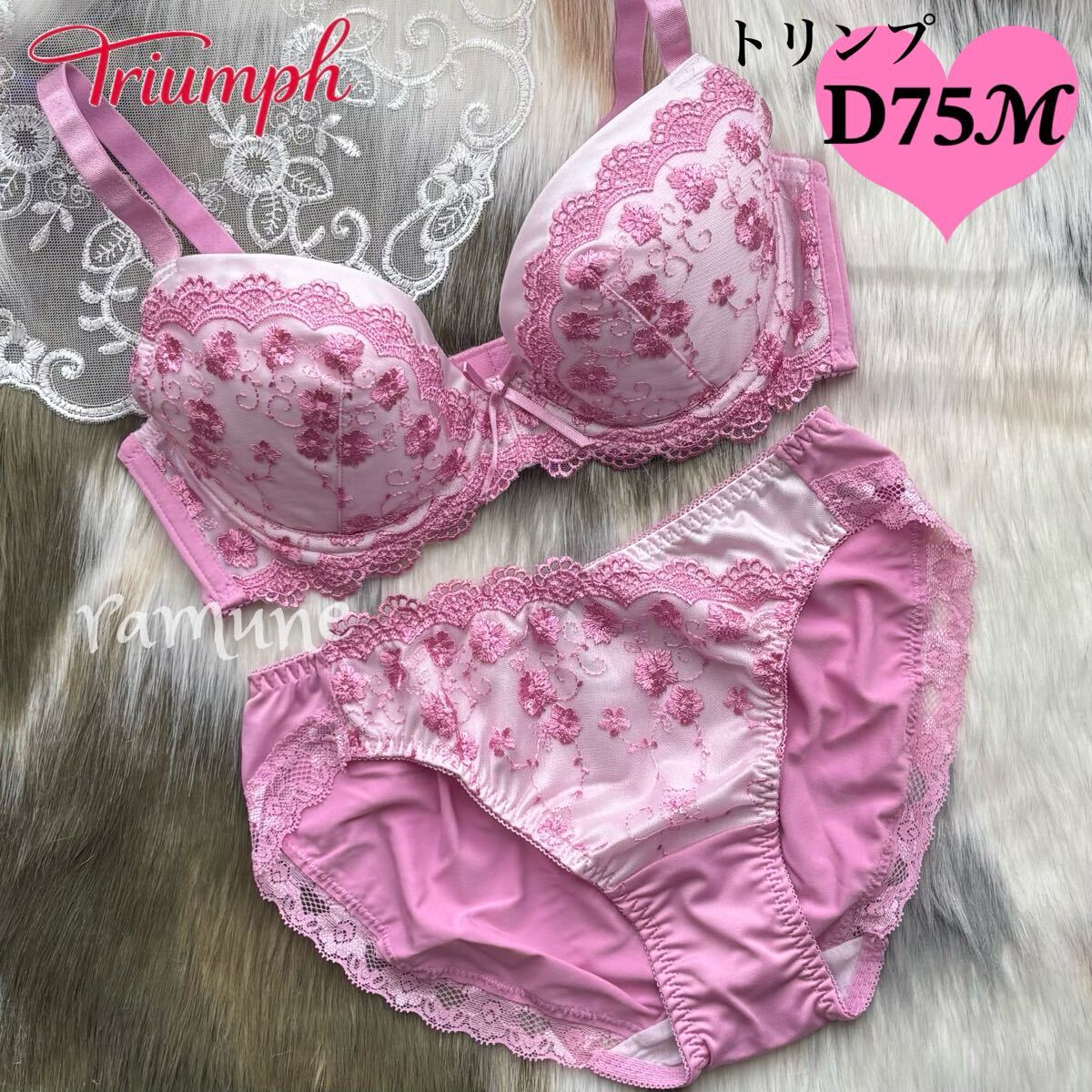 - 【トリンプ D75-M ピンク】新品 Triumph ブラジャーショーツセット パッド付き 上向きバスト 寄せ上げブラ かわいいパンティ Dカップ
