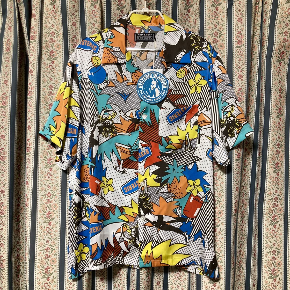 - 新品 ヒステリックグラマー hysteric summer総柄オープンカラーシャツ アロハシャツ 半袖シャツ ロゴ トロピカル サマー ガール柄 アメコミ