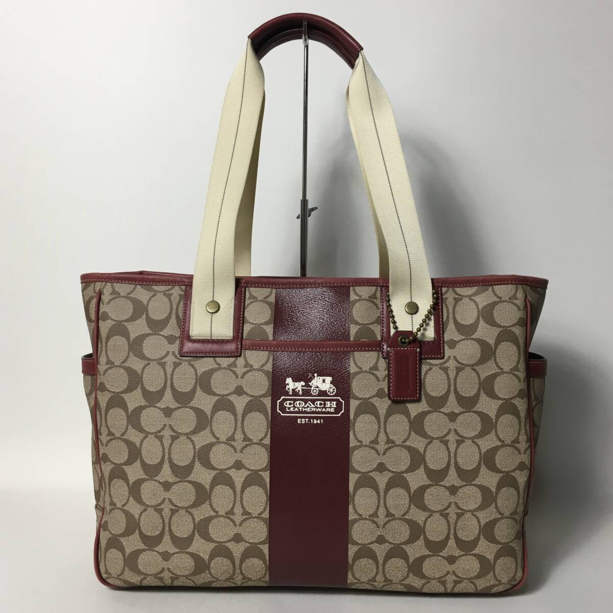- 76B337|美品|コーチ シグネチャー トートバッグ ボルドー