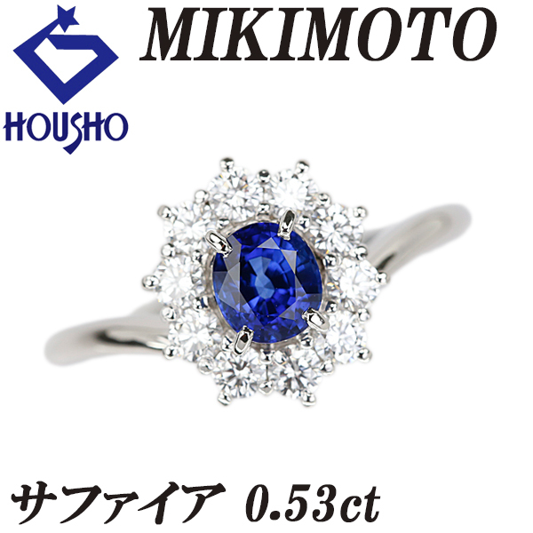 > ミキモト ブルーサファイア リング ダイヤモンド Pt900 MIKIMOTO V字 送料無料 中古 宝正 901996