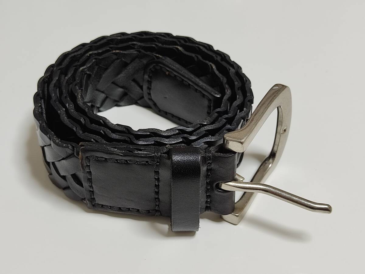 > 【送料無料】太めの本革編み込みヴィンテージベルト 黒系色 ブラック系色 皮革・レザーベルト ウエストベルト 1個