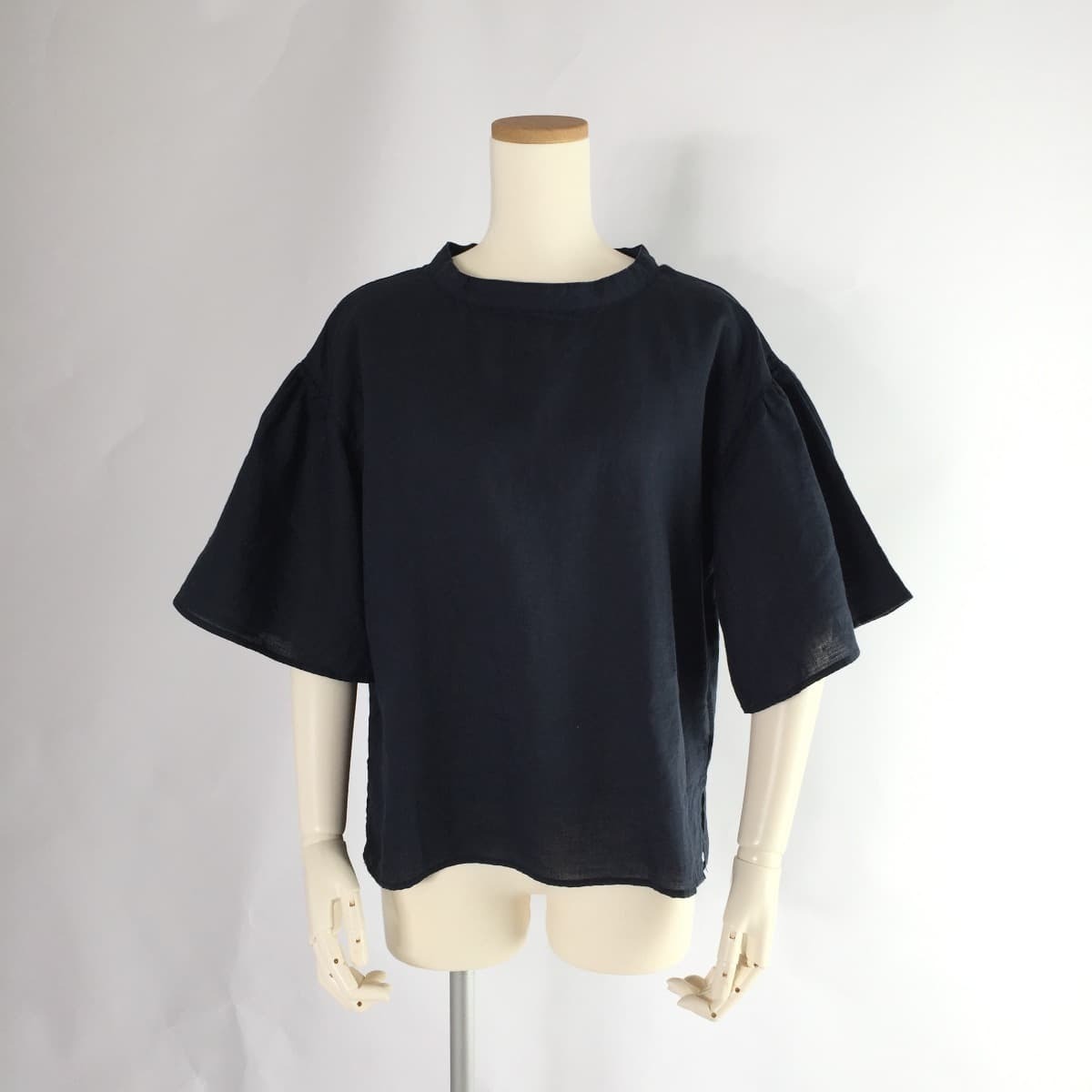上品な光沢感のあるリネン100%素材。バックにフリルを施し、広がりを持ったワイドスリーブが気になる部分も隠してくれるデザインで、風通しが良く涼しげに着て頂けます。裾のサイドにはスリットが入りトップスインもオススメのアイテムです。