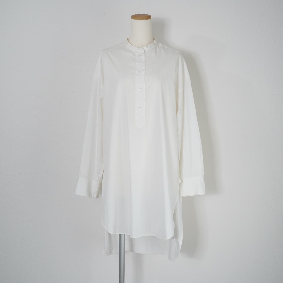 コメント:【2020AW】FRAMeWORKノーカラーでスッキリと見せたオーバーサイズのロングシャツ。大胆な前後差は、お尻がすっぽり隠れるバックスタイルデザイン。使い方次第でオールシーズン着用可能な優秀アイテムです。