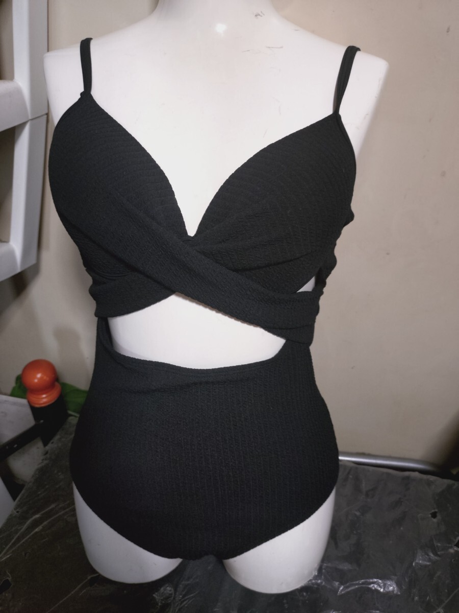- M4334◆大胆カット◆セレブなブラックワンピース水着◆7S
