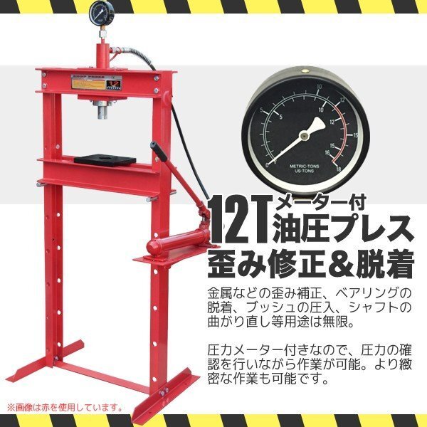 - 【送料無料】12t ショッププレス 門型プレス機 メータ付12トン 油圧プレス 赤