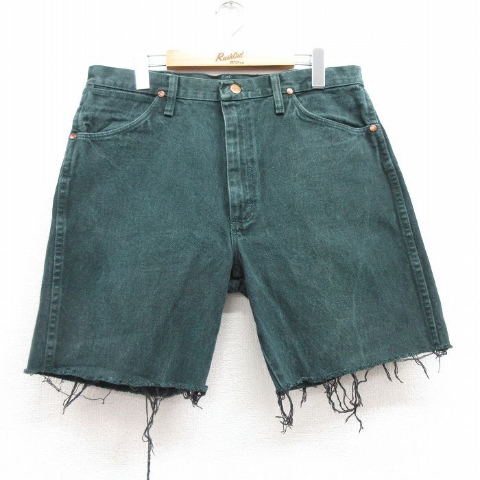 > W36/古着 ラングラー ショート パンツ ショーツ メンズ コットン 緑 グリーン デニム 25jul17 中古 ボトムス 短パン ショーパン ハーフ