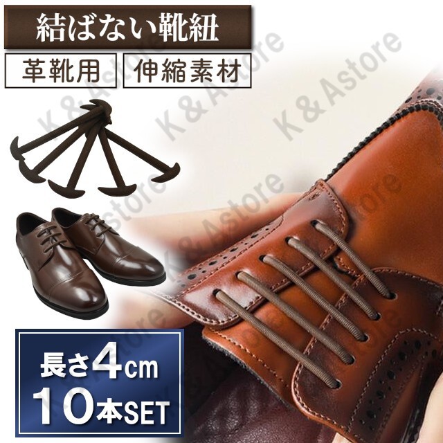 - 靴紐 革靴用 結ばない靴紐 靴ひも ほどけない ビジネスシューズ レザーシューズ シリコン ゴム シューレースロック メンズ ブラウン 茶 4cm