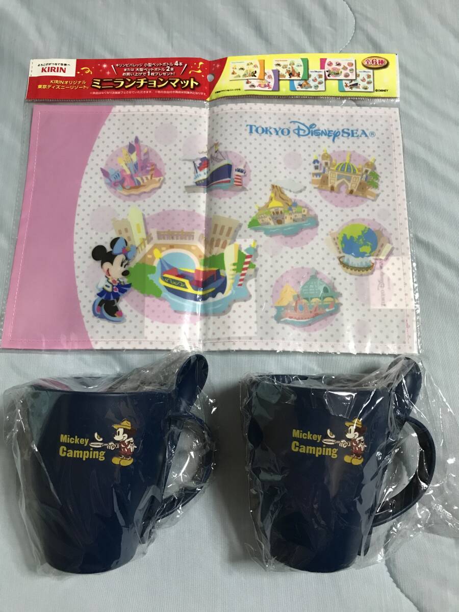 - ディズニーグッズ ミッキースプーン付きコップ2個とミニーミニランチョンマット3点セット s6