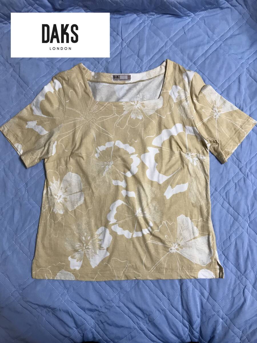 - ダックス ベージュ地に白花柄えりスクエア半袖カットソー F t249