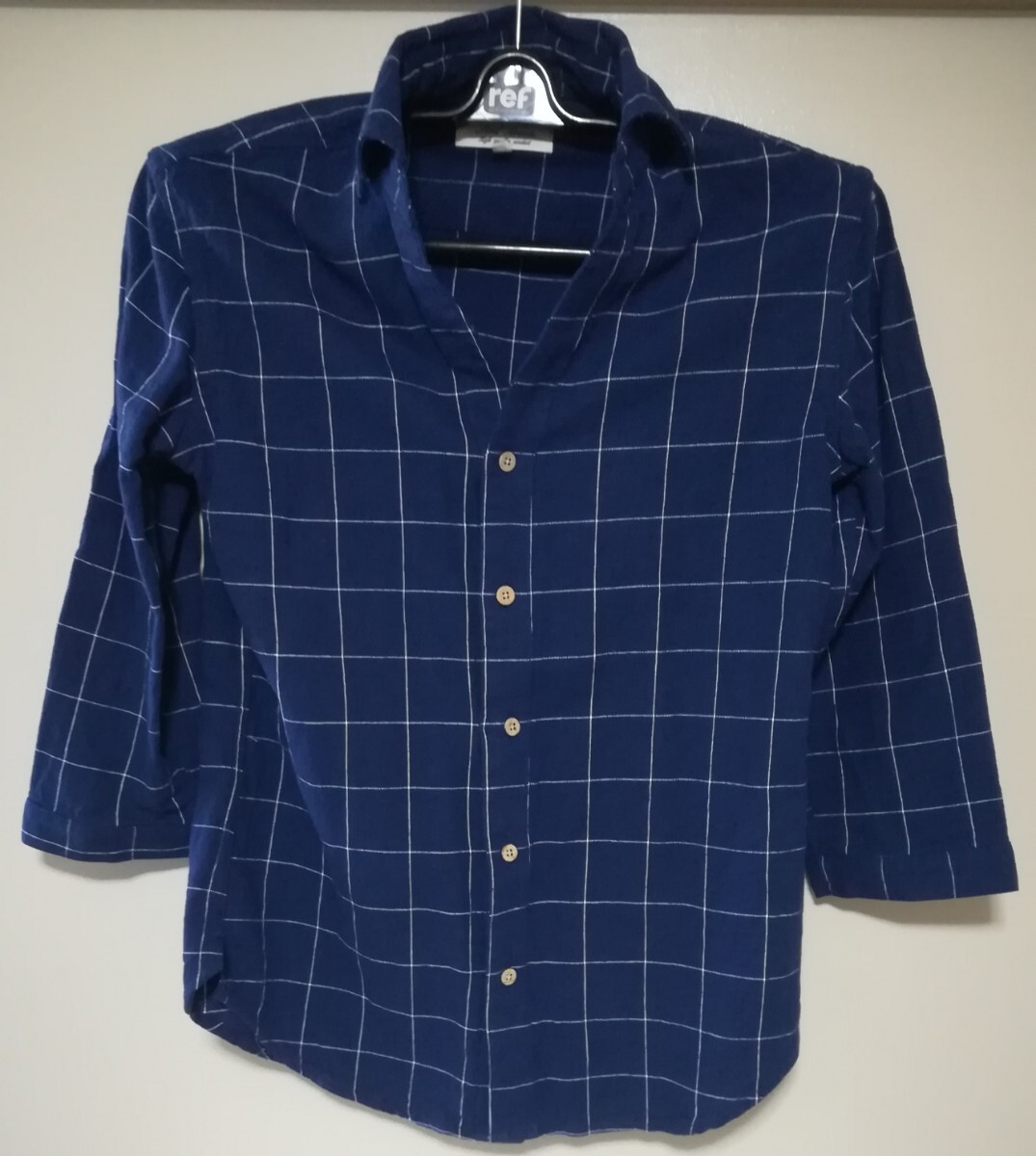 - 中古 ノーブランド 格子柄 七分袖シャツ ネイビー M
