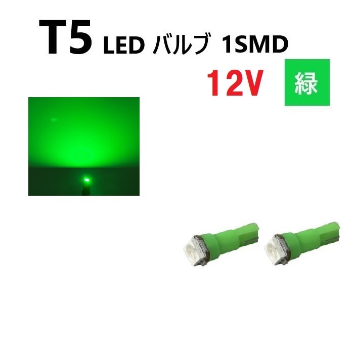 - T5 LED バルブ 緑 12V 【2個】 グリーン SMD ウェッジ メーター エアコン パネル インテリア 定型外 送料無料