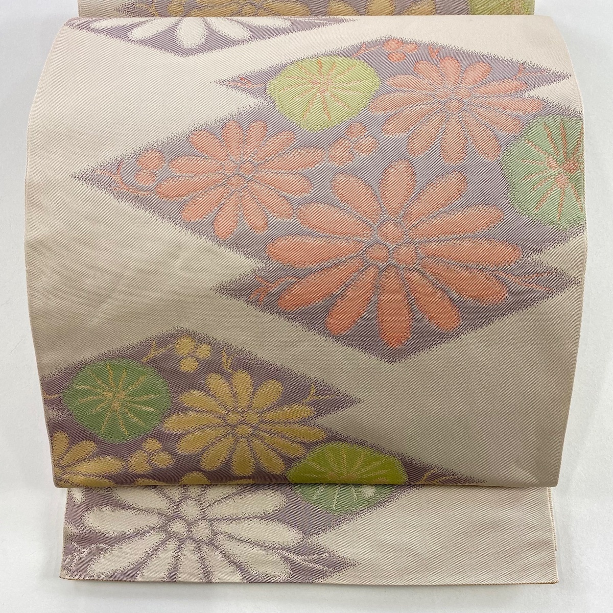 > 袋帯 美品 秀品 織悦 落款 松皮菱 花 薄小豆 全通 正絹 【中古】