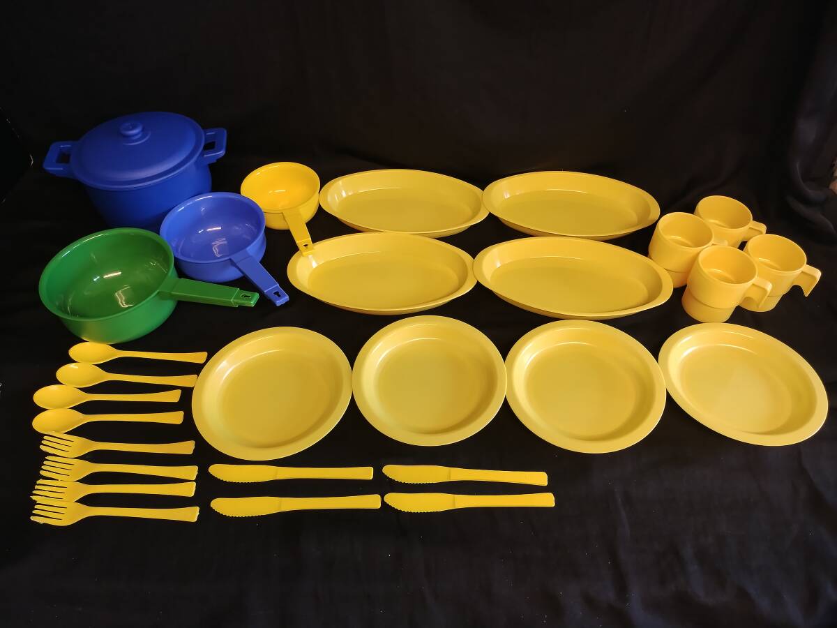 - 【未使用・保管品】28点まとめ売り おなべセット 食器セット 両手鍋 片手鍋 丸皿 楕円皿 コップ スプーン フォーク ナイフ アスコ ASCO