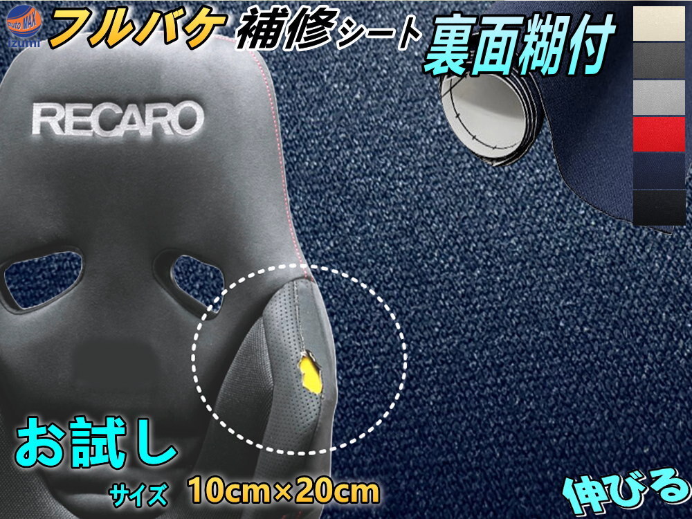 > フルバケ補修用シート (お試し) 紺 10cm×20cm 裏面糊付き バケットシート フルバケットシート セミバケット セミバケ 0