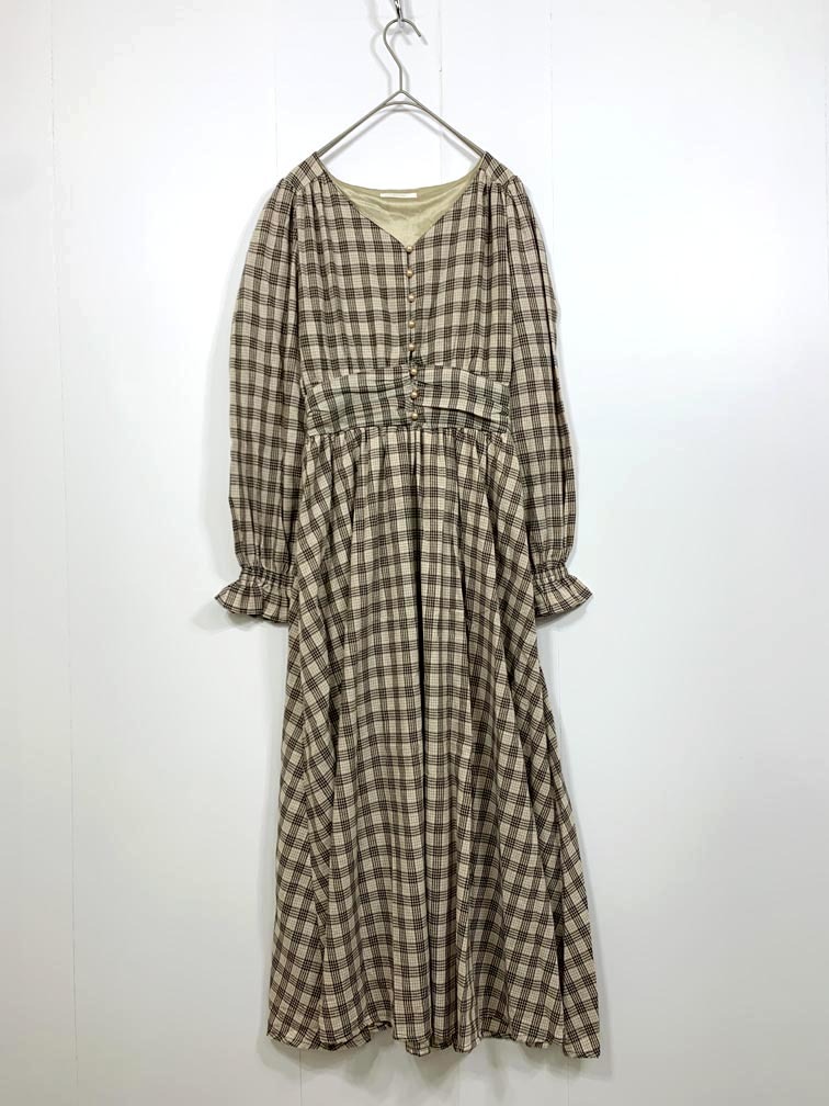 > ゆうパケットOK MIIA ミーア 3400-521-1 パフスリーブ長袖マキシ ワンピース sizeF/ベージュ ■■