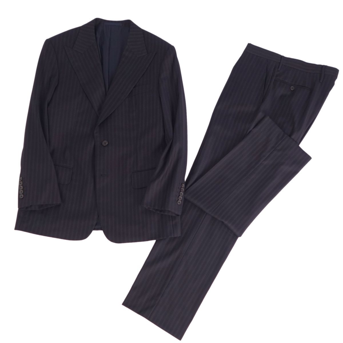 - 美品 グッチ GUCCI セットアップ スーツ シングル ストライプ ウール ジャケット パンツ メンズ 50(M相当) ネイビー ce07on-rm20e32528