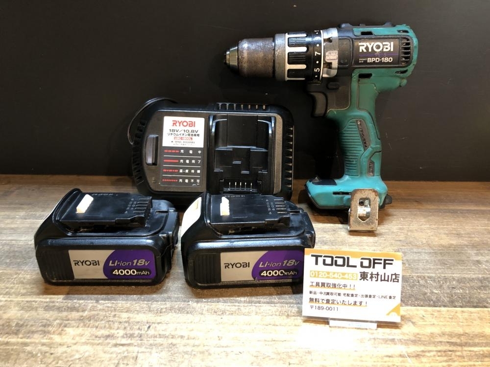 > 004★おすすめ品★RYOBI 18V充電式震動ドライバドリル BPD-180 バッテリ×2 充電器