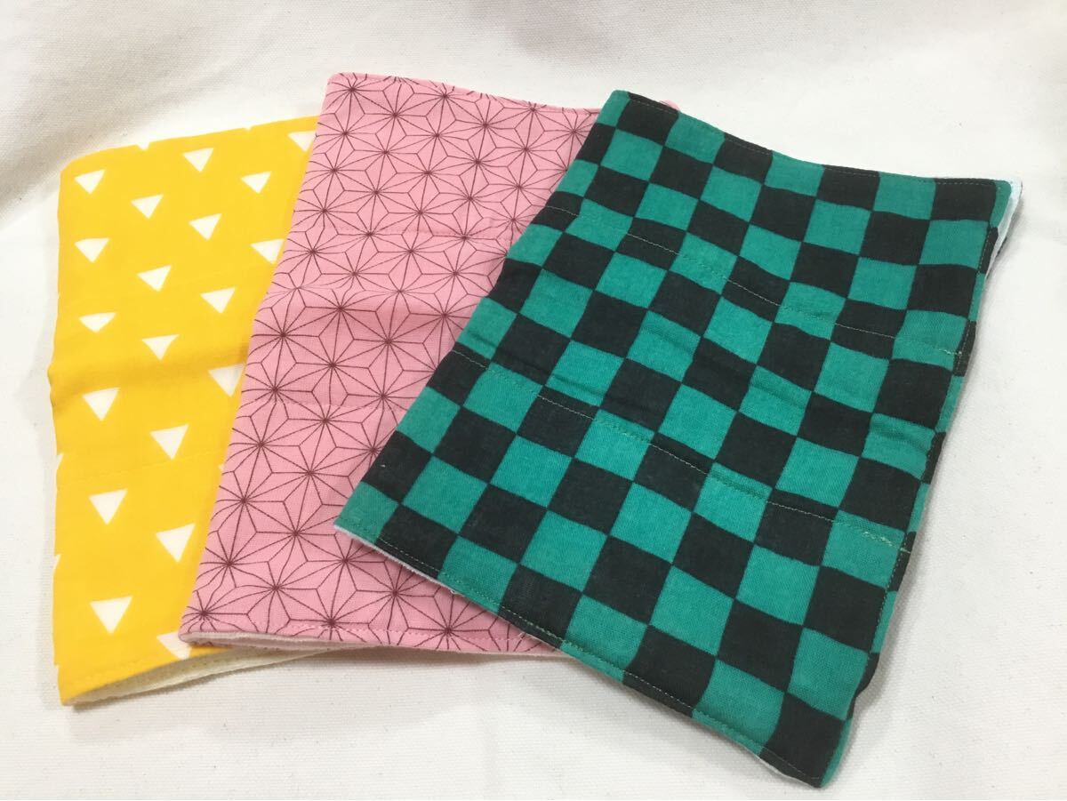 - ☆ハンドメイド 布巾 ふきん 台布巾 ガーゼ生地 市松模様 麻の葉模様 鬼滅の刃風 炭治郎柄 禰豆子柄 善逸柄 3枚セット手作り☆