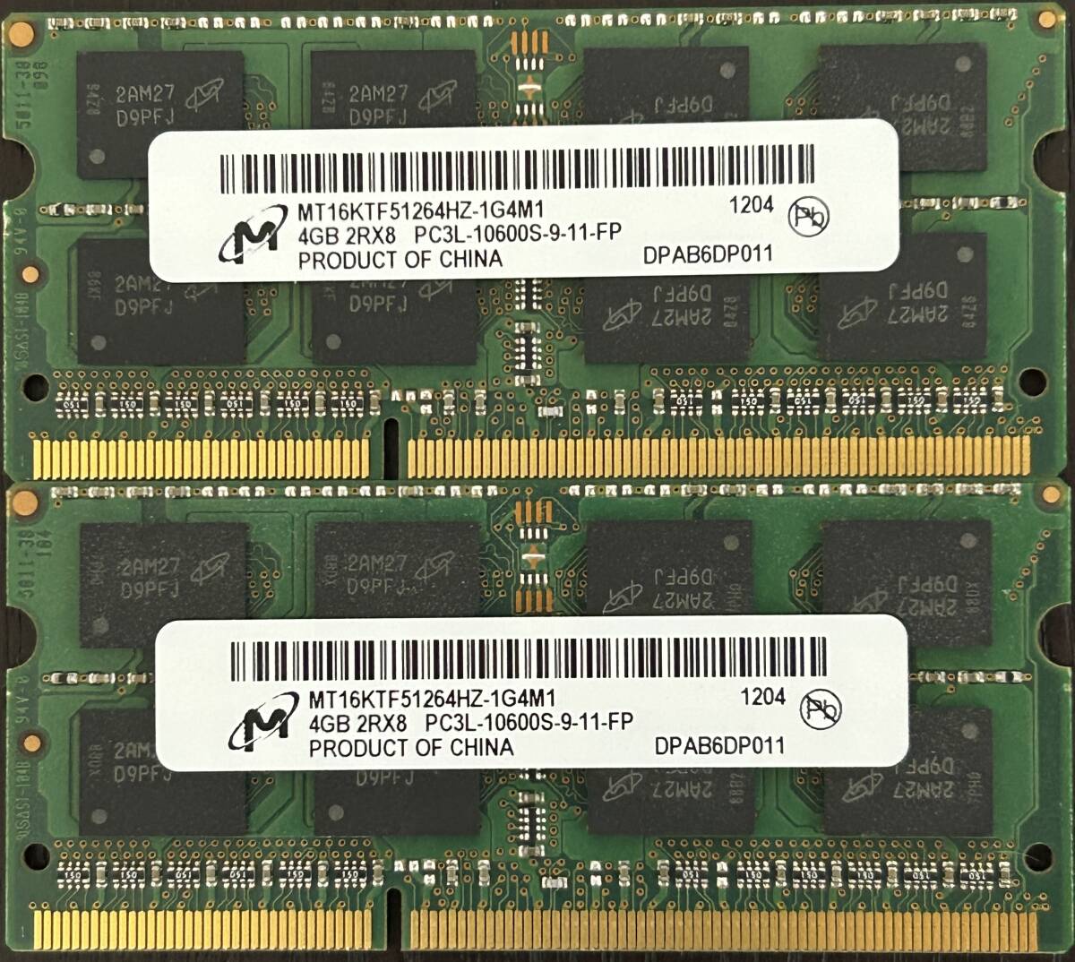 - 即決 動作確認済み Micron マイクロン SO-DIMM 204pin DDR3L PC3L-10600S 4GB×2枚1.35V低電圧対応 1.5V対応 ノートパソコン用 815