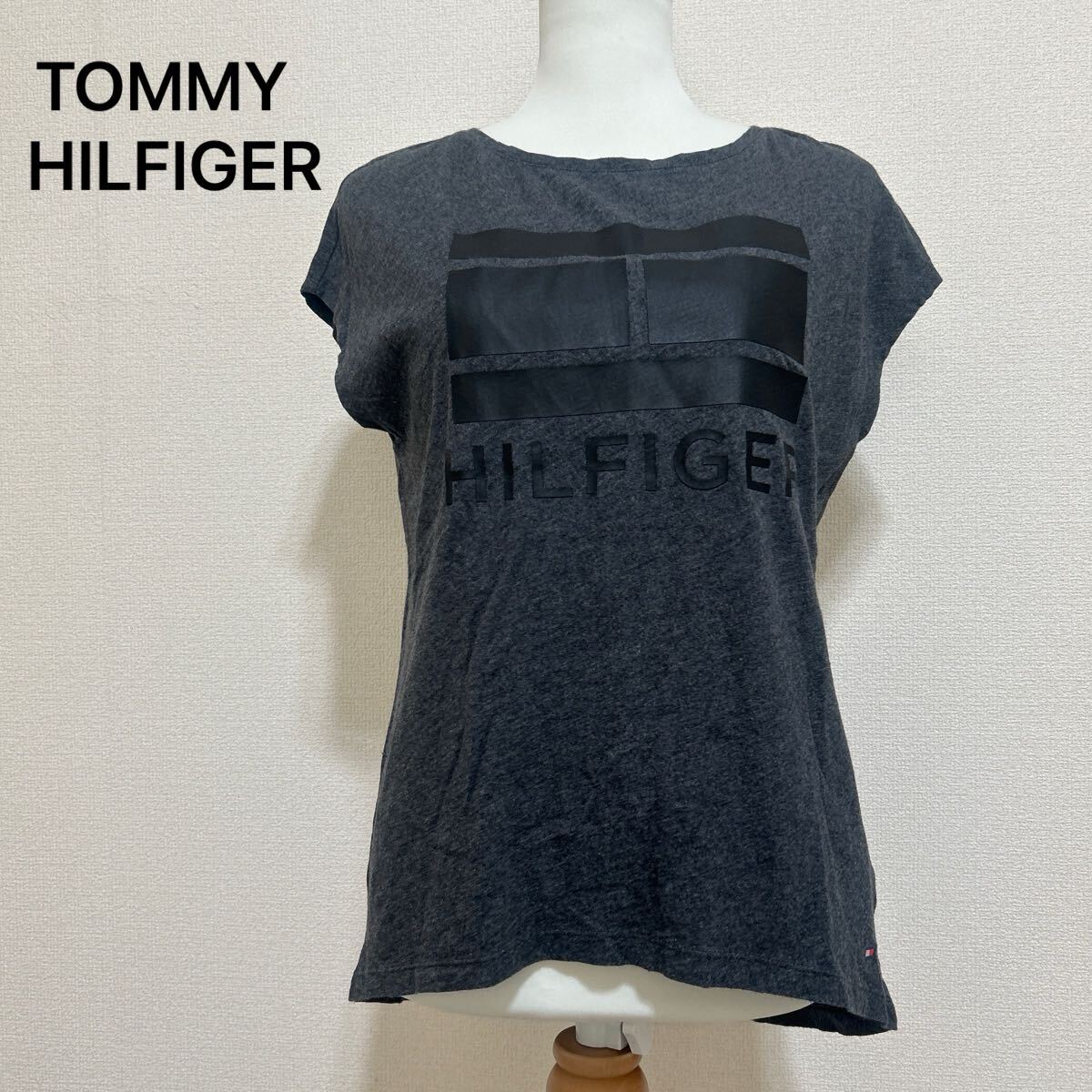 - 美品 TOMMY HILFIGER トミーヒルフィガー Tシャツ カットソー 半袖 トップス プリント ビッグロゴ 半袖Tシャツ コットン グレー 灰色 XS SS