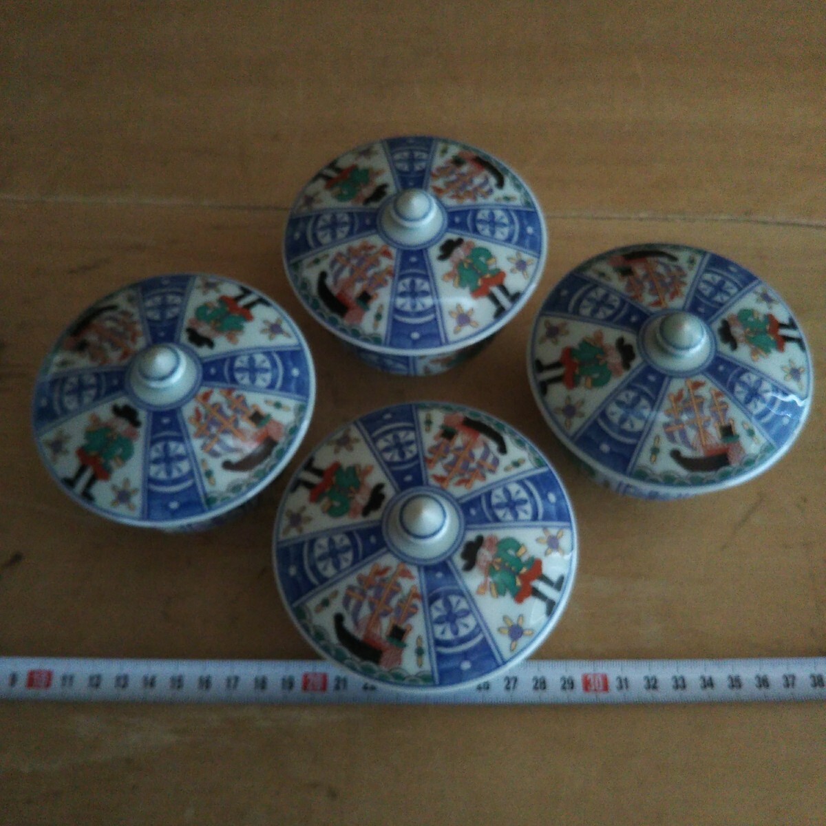 - 25072404 有田焼 聖山窯 南蛮図 蓋付き湯呑セット 南蛮船