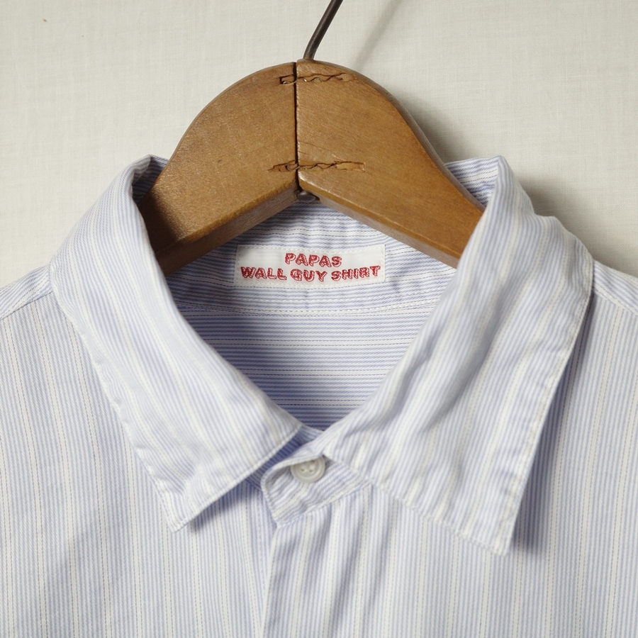 - PAPAS WALL GUY SHIRT パパス ストライプ 長袖シャツ M 青系