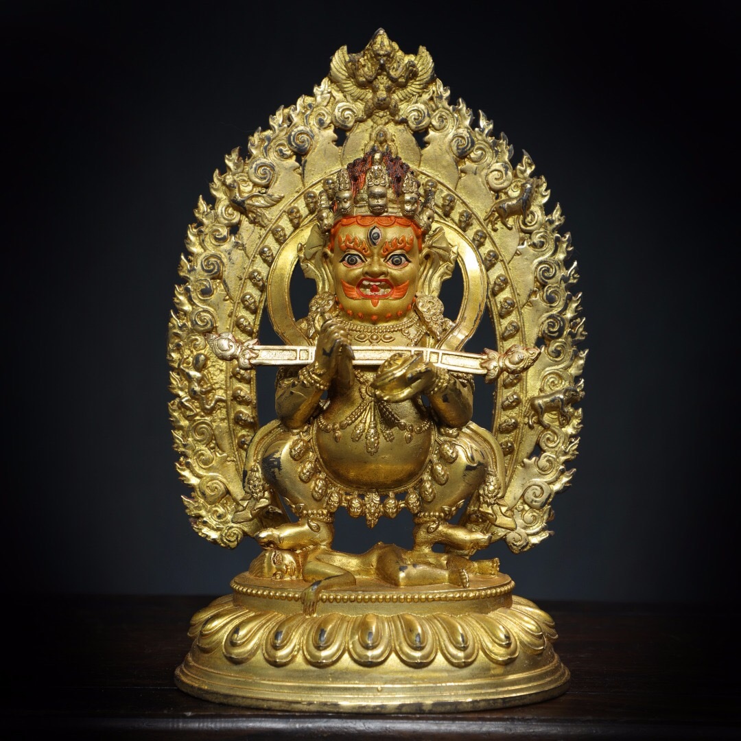 - ▽鴻▽ 銅製 塗金 大黑天仏 仏像 宗教 仏教古美術 供養品 古賞物 古董品 時代物 稀少珍品 中国古玩 中国古美術