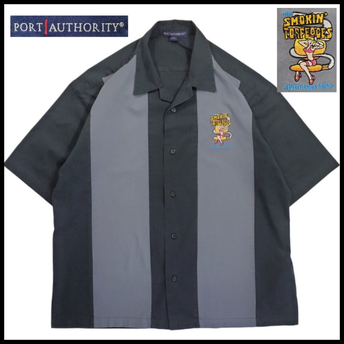 > w252/ 古着 PORT AUTHORITY フィフティーズスタイル半袖 ワークシャツ XL 刺繍 SMOKIN TORFEOCES ピンナップガール 洗濯プレス済 ネコポス