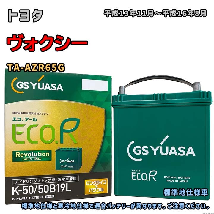 > バッテリー GSユアサ ER-K-50/50B19L トヨタ ヴォクシー TA-AZR65G 平成13年11月~平成16年8月 4WD K-42タイプ 48