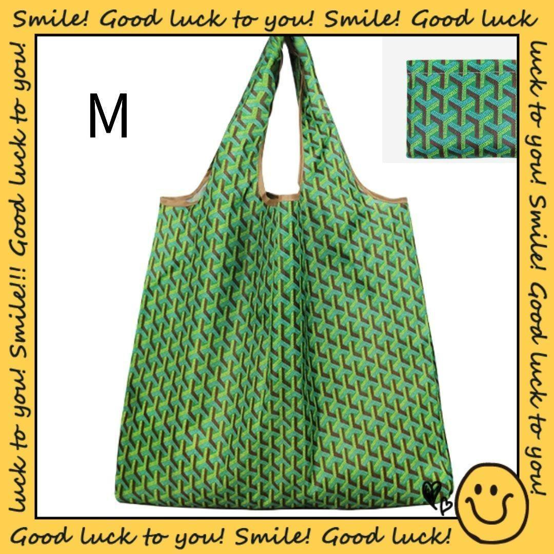 - ●新品●エコバッグ 折りたたみ M<緑色柄>大容量 便利 買い物バッグ レジ袋 収納袋 レジバッグ コンパクトバッグ 買い物袋 買い物バッグ