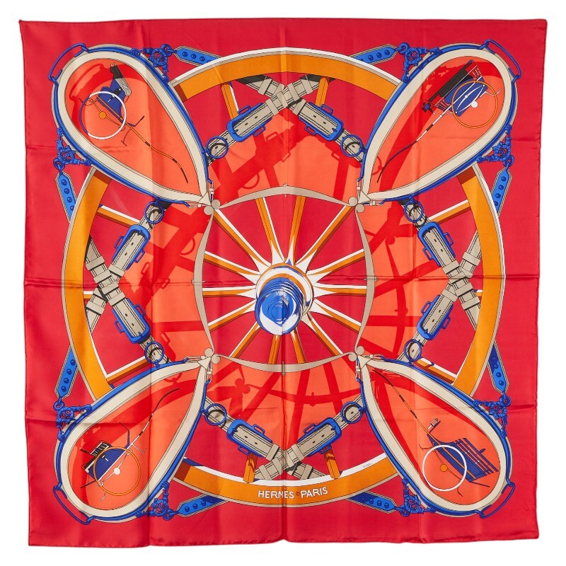 - エルメス カレ90 En Roue Libre 自由への車輪 スカーフ レッド マルチカラー シルク レディース HERMES 【中古】