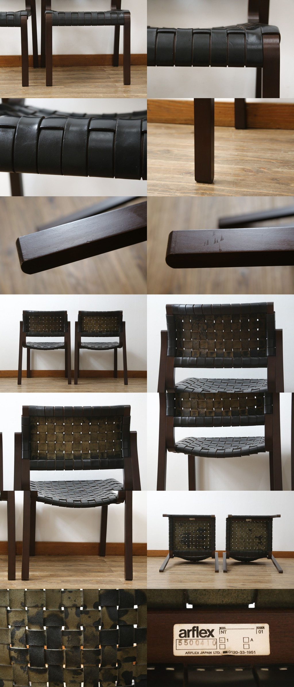 - R-074391 中古 arflex(アルフレックス) NT 本革 スタイリッシュ アームレスチェア2脚セット(スタッキングチェア、ダイニングチェア、椅子)
