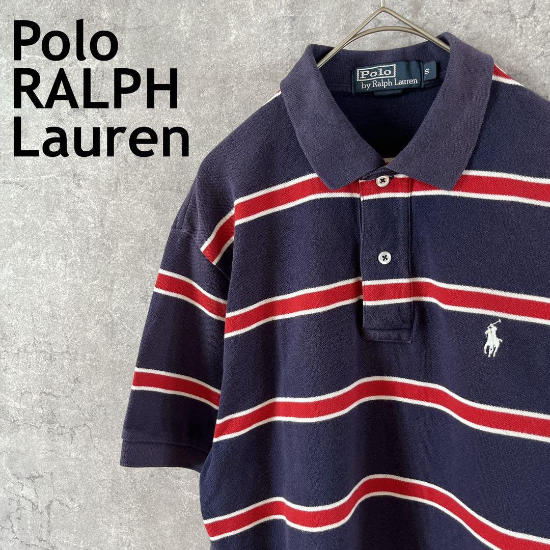 - 90s Ralph Lauren ボーダーポロシャツ半袖 紺 鹿子メンズSサイズ