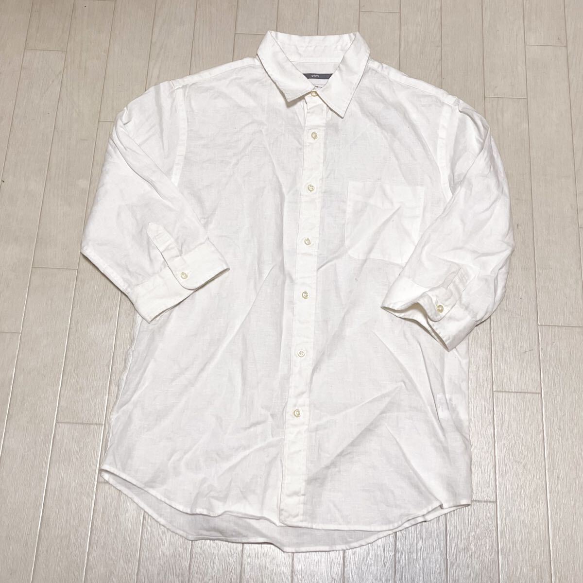 - 和802★ SHIPS NATURAL STRETCH シップス 7分袖ほど ボタンシャツ 胸ポケット リネンシャツ 日本製 M ホワイト メンズ