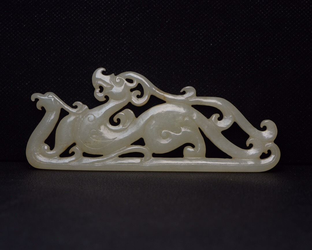 - 『館蔵珍品 和田玉製 細密彫 龍鳳呈祥 置物 賞物』稀少珍蔵品 古賞物 貴重物品 収蔵品 中国古美術 時代物 古董品