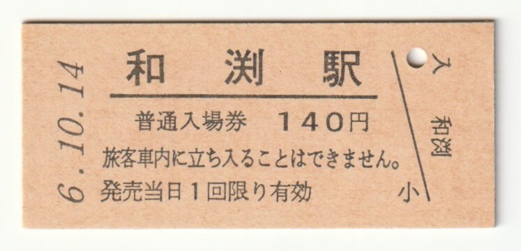 - 平成6年10月14日 気仙沼線 和渕駅 140円硬券普通入場券(日付印刷)