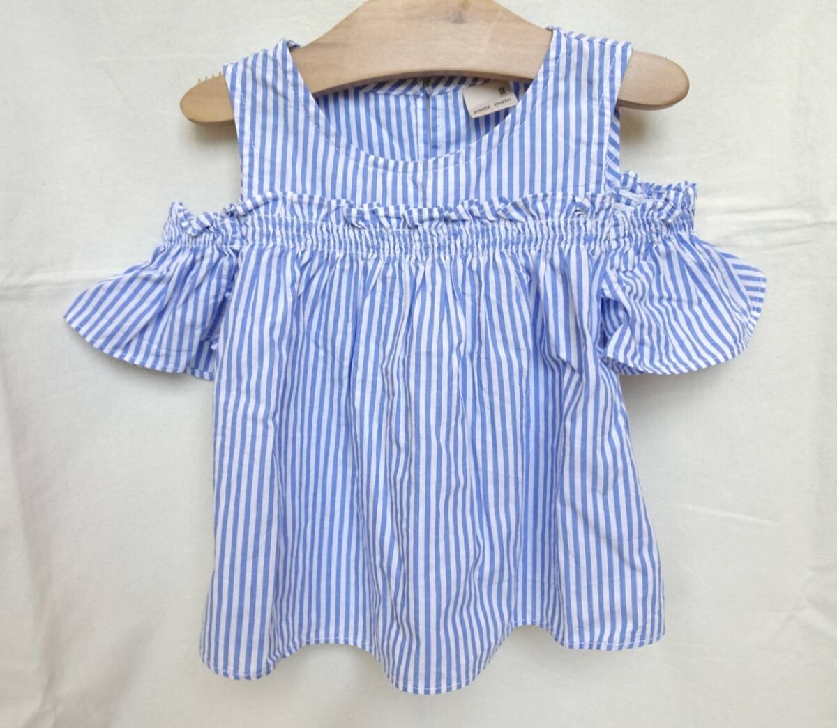 > petite main★プティマイン★半袖トップス★チュニック★ストライプ★ブルー系★肩出し★80