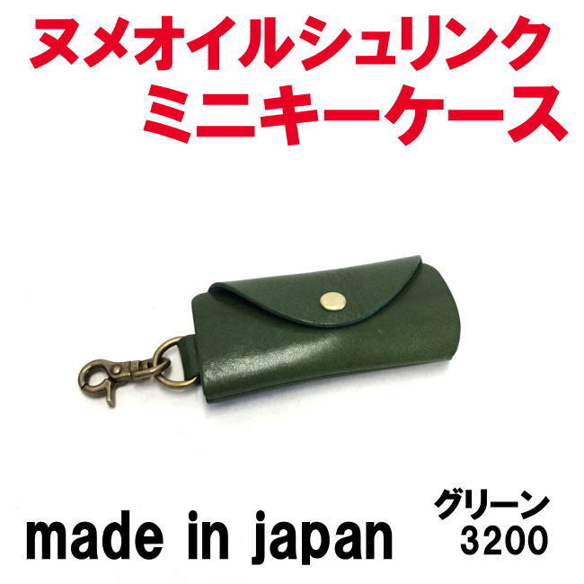 - グリーン 播州たつの 本革 ヌメオイルシュリンク 3200 牛革 ミニキーケース 日本製