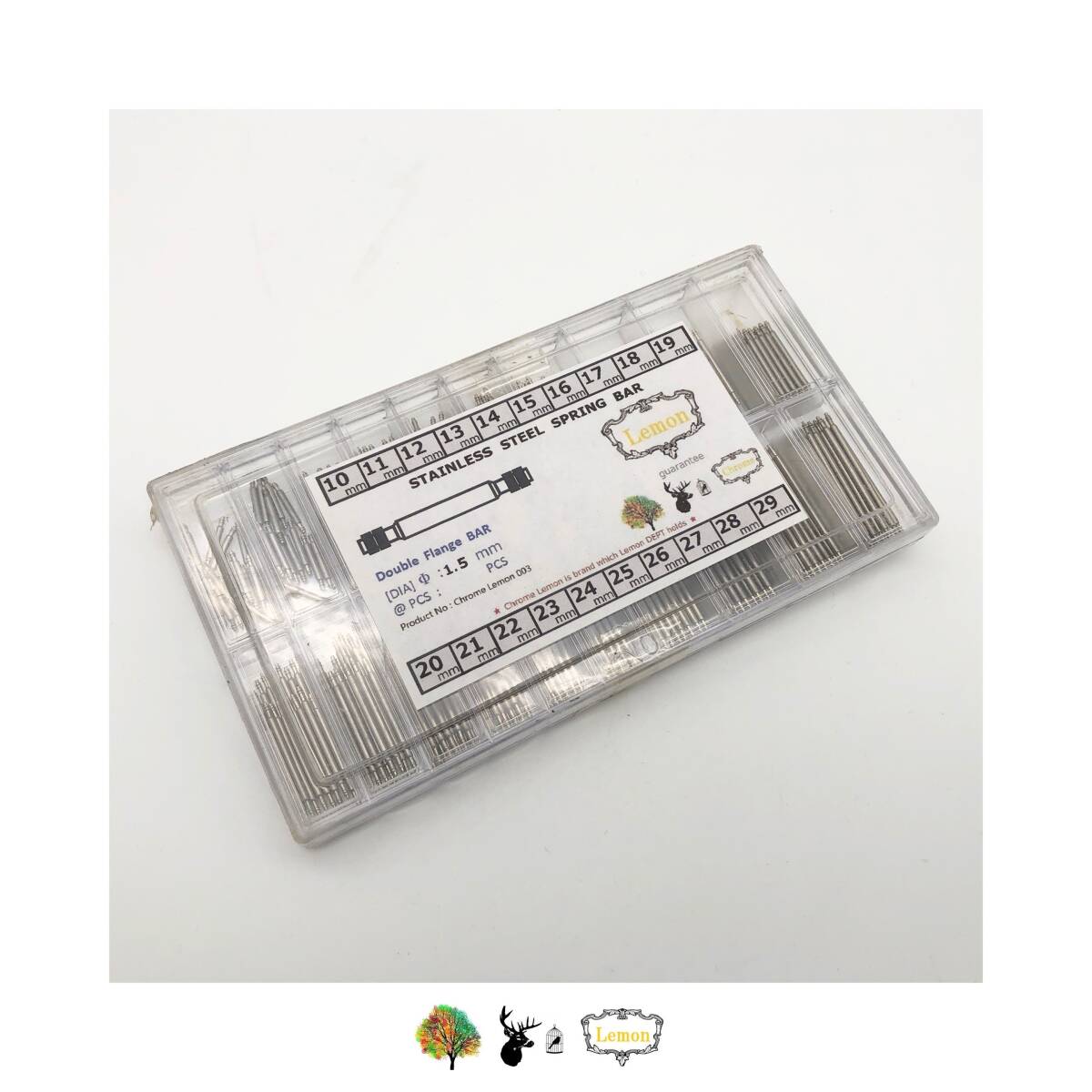 - 腕時計 時計用工具 腕時計用 リペアパーツ コマばね棒 バネ棒 パーツ セット 20サイズ 10mm~29mm 1.5φ 未使用 未開封 新品 Lemon 0903
