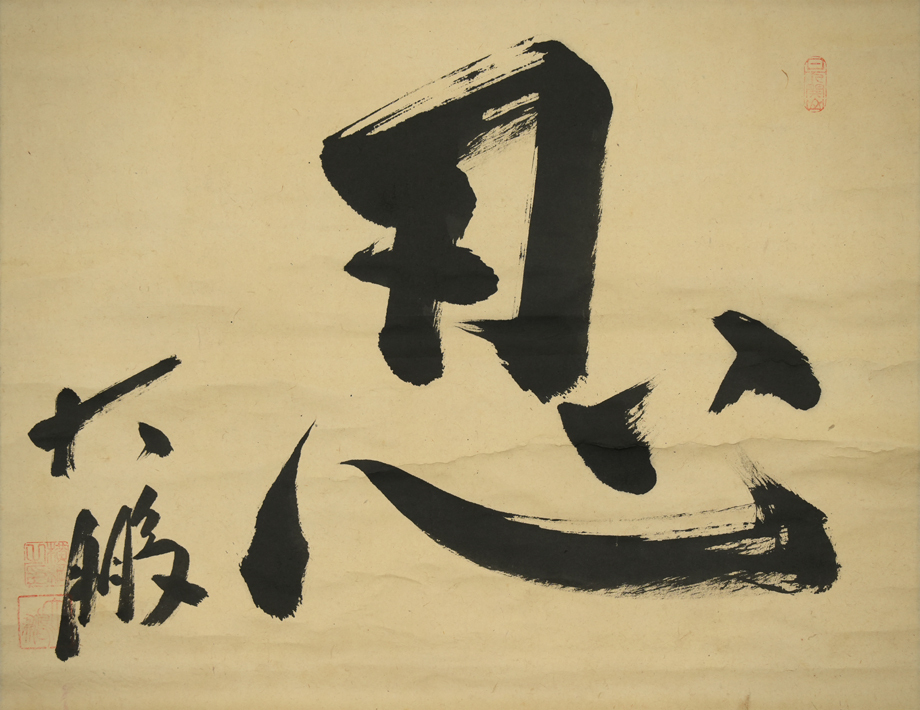 - 【真作】掛軸「大鵬幸喜 忍 大幅」昭和後期 力士 48代横綱 二所ノ関部屋入門 柏鵬時代 相撲博物館館長 文化功労者 国民栄誉賞 樺太生 書