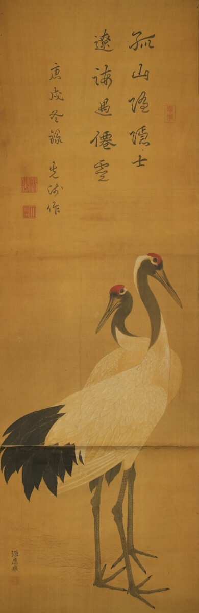- 【真作 江戸動物画】掛軸「奈羅延院宮賛 円山応挙画 鶴之図」国井応文極 江戸中期 円山派祖 書画