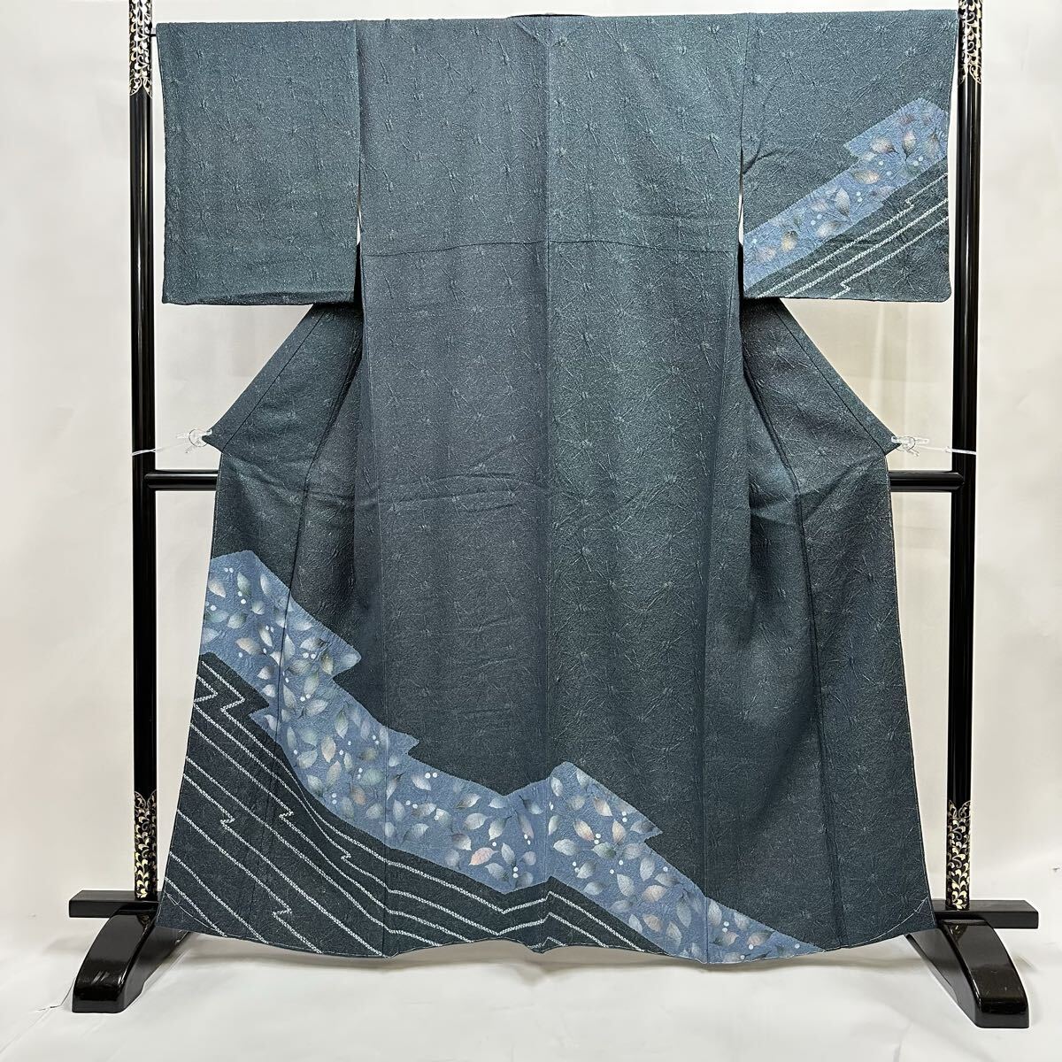 - 【七福】c690 訪問着 正絹 袷仕立て 膨れ織り 絞り オーロラ糸 ラメ 着物 逸品 身丈 約158.5cm 裄 約65.5cm