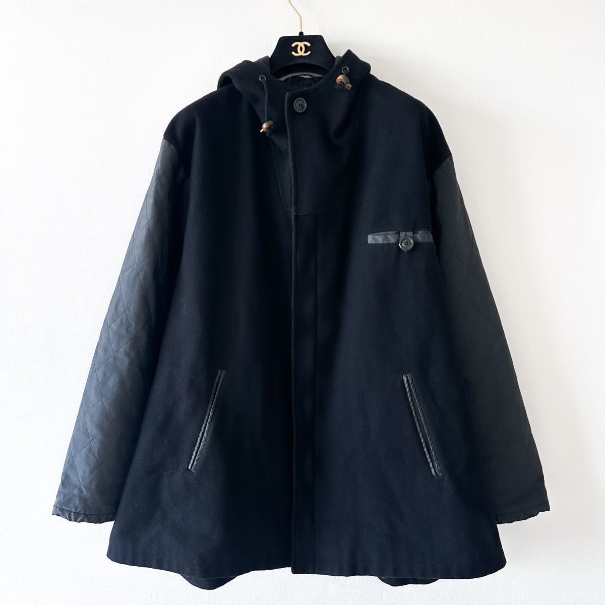 > ★ EMPORIO ARMANI エンポリオアルマーニ / フーデッドコート アウター 異素材袖 フードコート 黒 イタリア製 ブラック