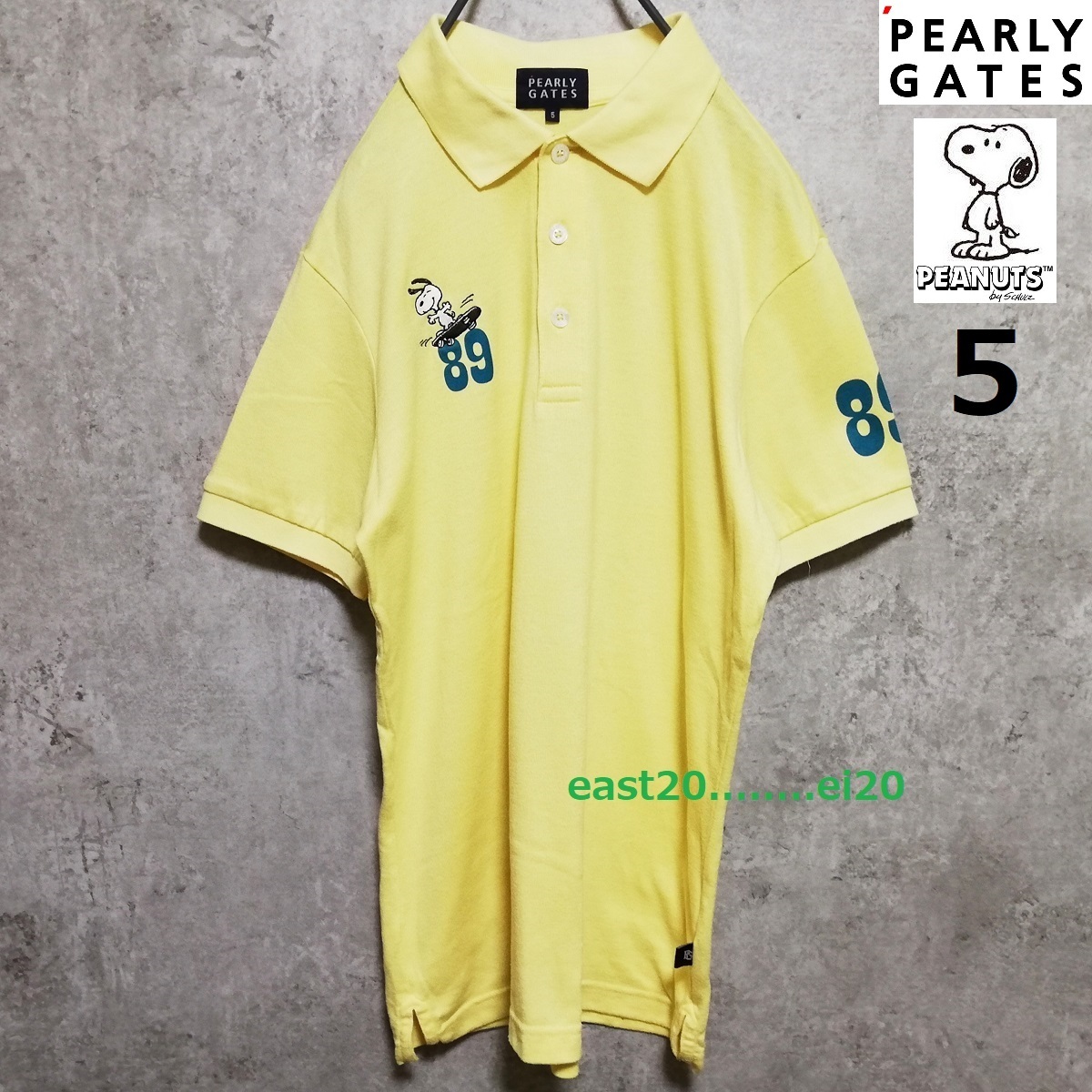 > PEARLYGATES PEANUTS SNOOPY パーリーゲイツ スヌーピー スケボー 刺繍 コラボ メンズ ゴルフ 半袖 ポロシャツ 5 イエロー 即決 送料無料