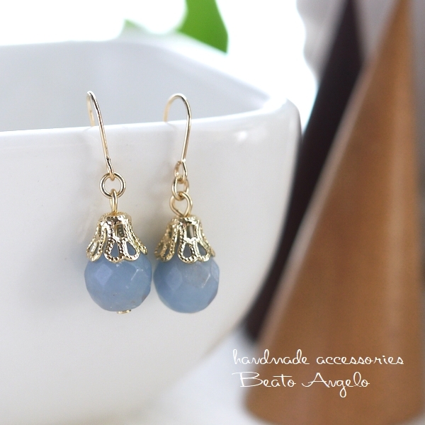 - ◇◇+angelo+天然石エンジェライトのシンプルピアス(p-044)一粒 G 8mm チタン 樹脂 イヤリング可 c001 サックスブルー