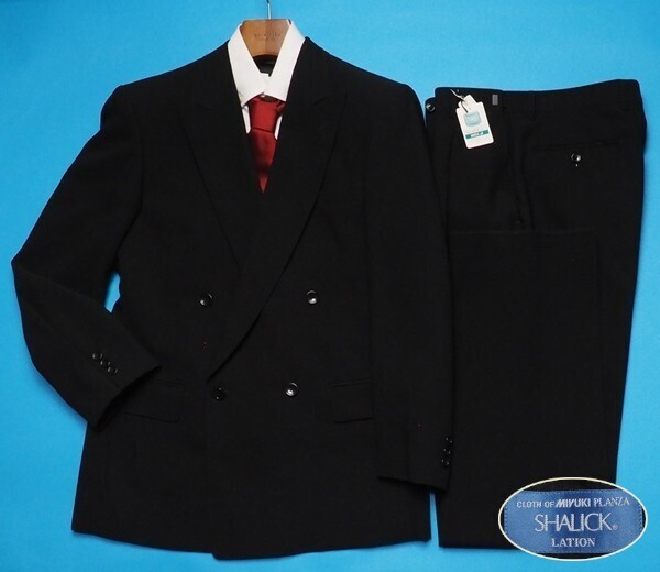 - 新品8.6万円 御幸毛織 MIYUKI PLANZA 完全日本製 モヘヤウール ダブルブレストスーツ/礼服A3黒無地 MRS8