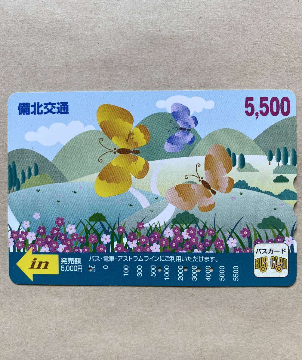 - 【使用済】 バスカード 備北交通 蝶 イラスト