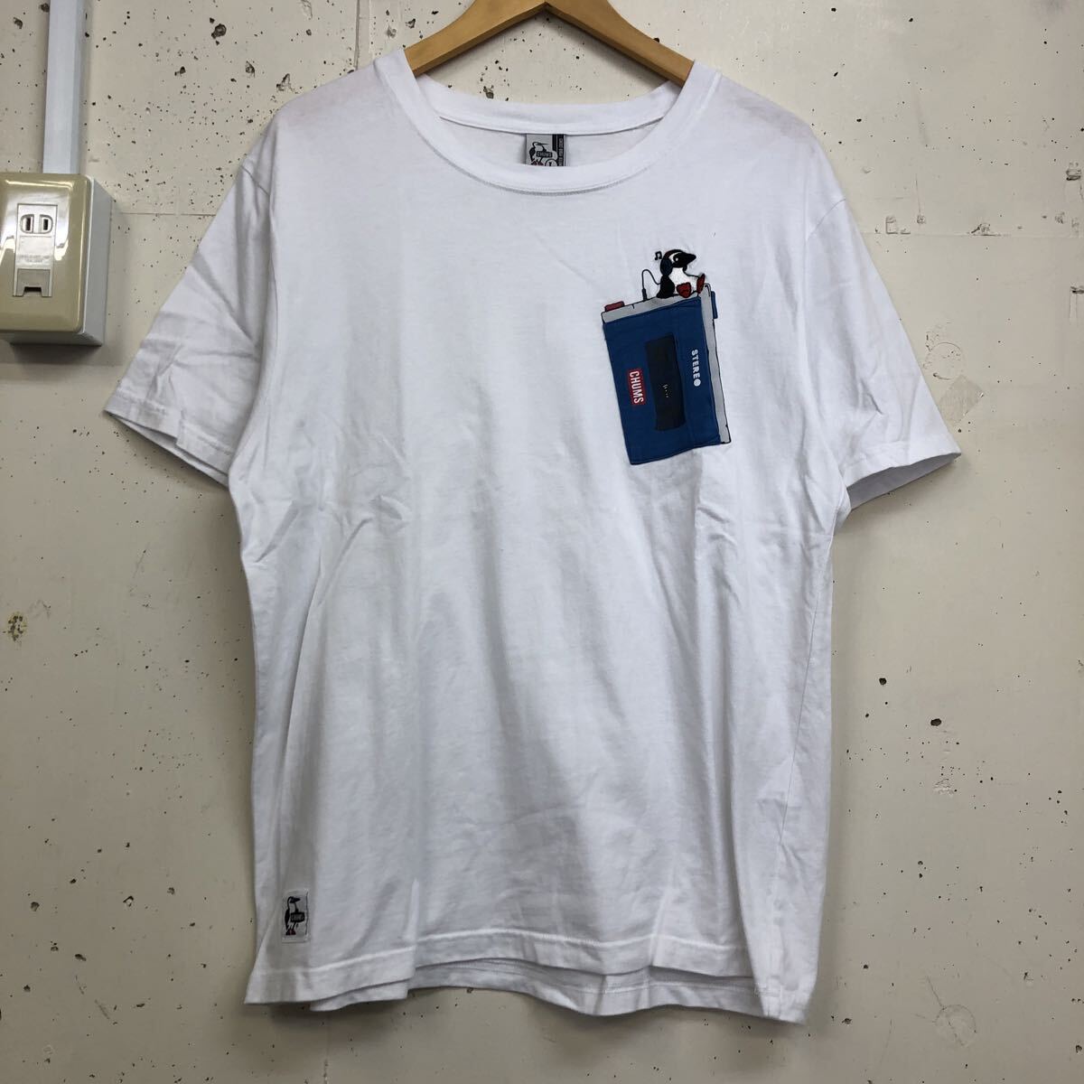 - 美品 CHUMS チャムス 半袖 ポケット tシャツ Tee 白 ホワイト カセットプレイヤー柄 メンズ サイズL