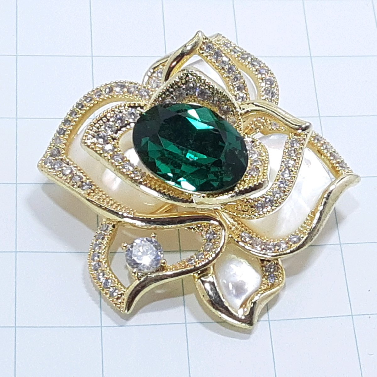 - 送料無料)ビンテージ☆グリーンラインストーン フラワーデザイン☆アンティーク ブローチ A31189